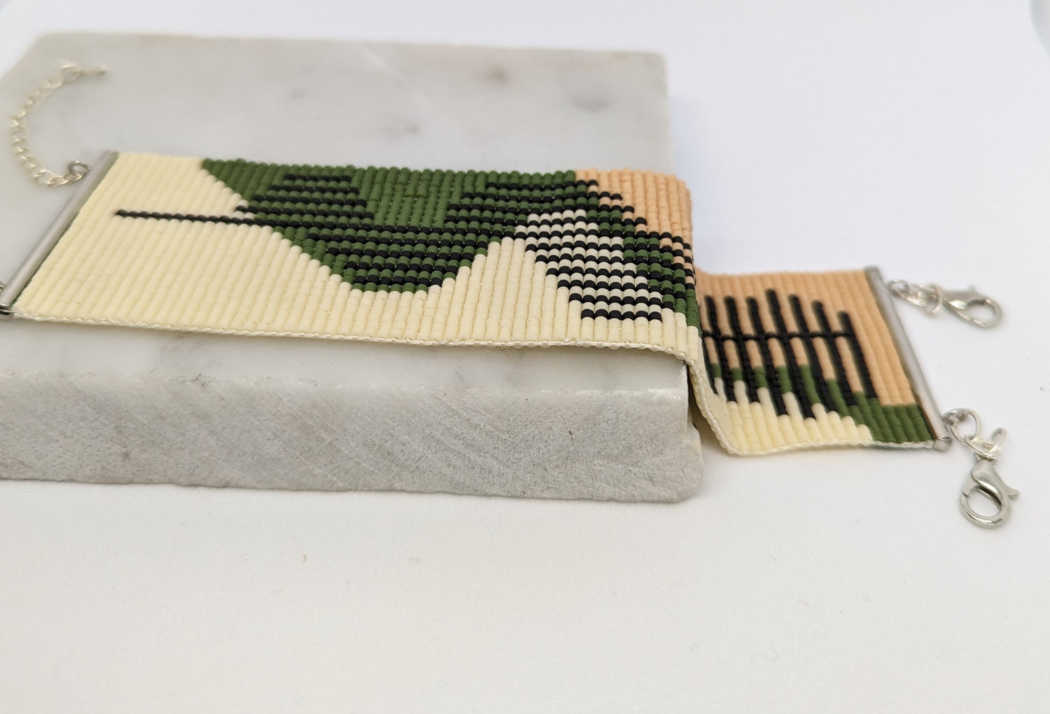 Made with 2,000 delicate glass beads in earthy, natural tones, this unique cuff bracelet reflects the beauty of the Australian grasslands—centering the humble dandelion.